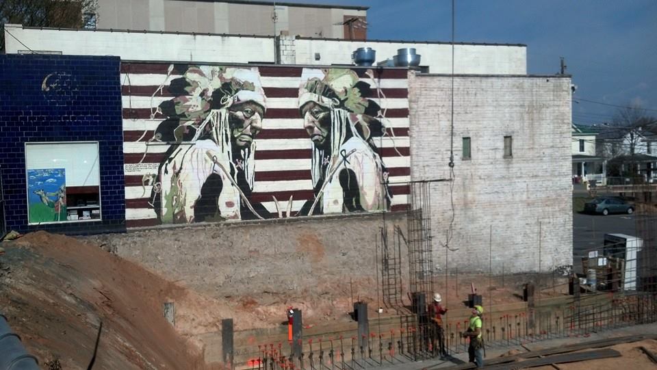 The iconic mural of two Indian chiefs that graces the side wall of the Afghan Grand Market on West Main Street will remain as a new Marriott Residence Inn goes up beside it, but it will be largely obscured from view, say City officials.