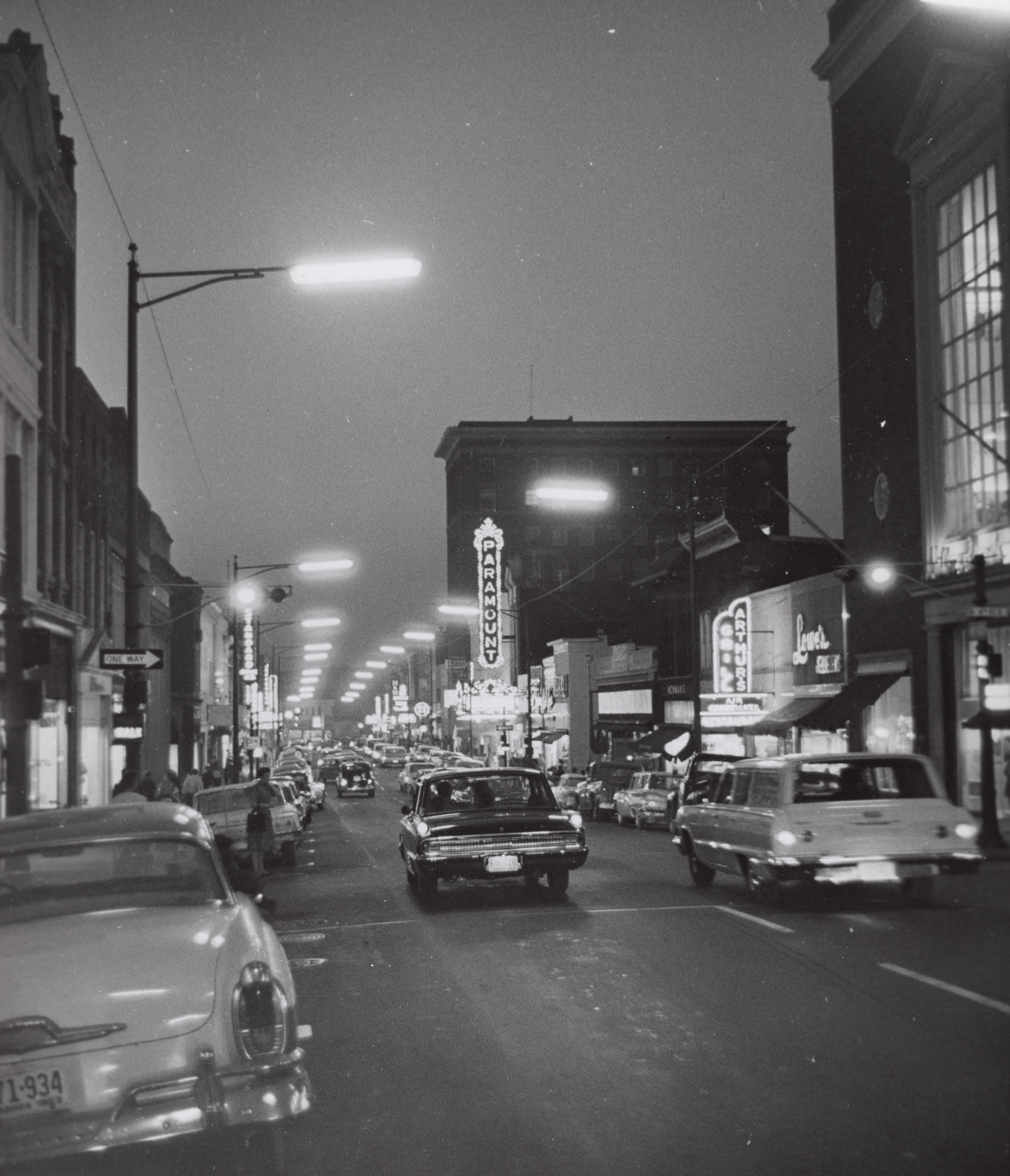 Main Street, 1963. This photograph by Ed Roseberry shows the 200 and 300 blocks of East Main Street (looking west from about Fourth St.) A full decade before the Downtown Mall would be built, automobile traffic flowed one-way (west) at the time. Note the businesses along Main Street: the tall building to the right was Miller & Rhoads. Arthur’s Grill is a few doors down. The Paramount Theater had an enormous vertical sign back then. More of Ed Roseberry’s vintage photographs can be seen at an upcoming slideshow on June 11 at C’ville Coffee. Details at www.cvilleimages.com