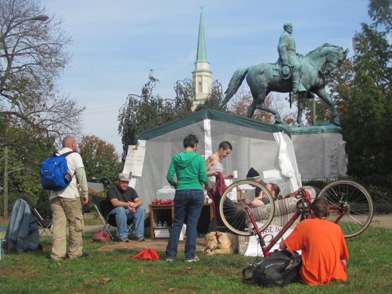 Remember when Occupy Charlottesville, our local version of the Occupy Wall Street movement, occupied Lee Park in 2011? Right beneath the Lee statue I remember talking to people who were as mad as hell about the widening gap between rich and poor, and with the predatory practices of the government bailed-out banking industry, but I don’t remember hearing even a casual reference to the symbolism of the Lee statue.
