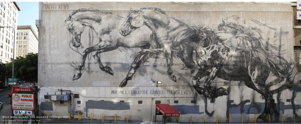 What happens when a world famous mural artist, commissioned recently by Bono on behalf of Paint (RED) to help raise awareness in the fight against AIDS, whose was selected earlier this year to paint murals at Dr. Maya Angelou Community High School in South L.A. as part of a week-long Maya Angelou Mural Festival in Los Angeles, and whose work incorporates images of animals….gets commission by the Charlottesville Mural Project and a local developer to paint a mural of a horse on the side of a building on West Main Street in Charlottesville, Virginia?