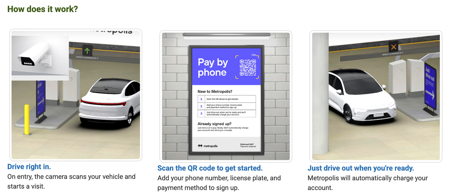 “…residents and visitors will be able to enjoy an easy experience where their vehicle becomes their parking pass,” the announcement eerily declared. “Metropolis technology will handle the rest, eliminating wait times and equipment failures.”