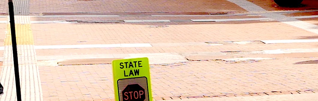"To my knowledge, nothing's been implemented in the crossings specifically except for those "straight only" signs that don't work prior to the crossing and the yellow signs on the side that are constantly getting knocked down," says City planning commission member Rory Stolzenberg, who also thinks it's worth noting that the actual surfaces of the crossings are in a serious state of disrepair, as vehicle weight, and a design that wasn't conceived to accommodate vehicle traffic, is mangling the bricks.